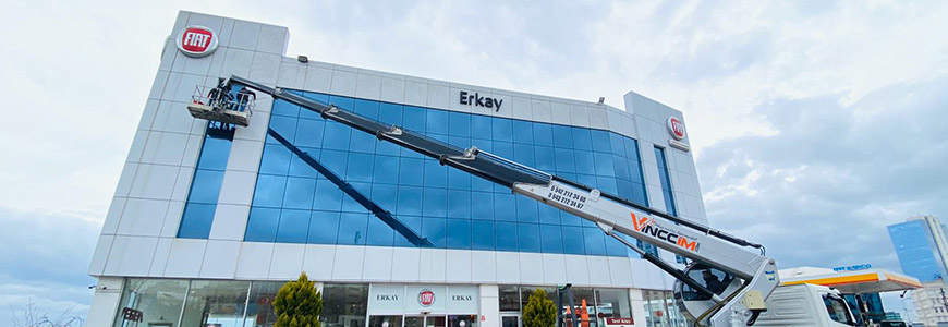 Dış cephe alikoband, alemiyon, Metal, kaplama, cam giydirme cephe, plaza ya da yüksek bina türü ne olursa olsun binanızın konumuna göre vinç yardımı, asma sepet yardımı, makaslı platform, örümcek vinç ya da teleskopik uzatma ile binanıza uygun bir çözüm önerilir.